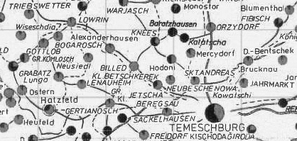 Grabatz, Bogarosch, Alexanderhausen, Billed, Kleinbetschkerek, Kleinjetscha, GrossJetscha, Ostern, Neubeschenowa, Knees, Mercydorf, Gertianosch.